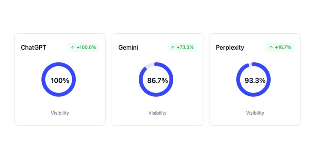 Wir analysieren, wie oft und prominent deine Marke in den wichtigsten Sprachmodellen wie ChatGPT, Gemini, Perplexity und anderen erwähnt wird - basierend auf echten Nutzeranfragen.
